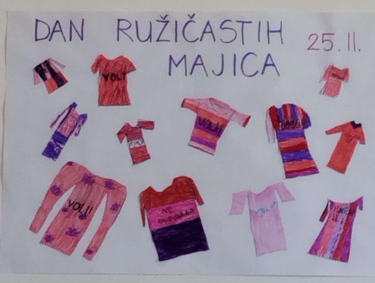 U srijedu, 25. veljače, obilježili smo Dan ružičastih majica – Nacionalni dan borbe protiv vršnjačkog nasilja. Učenici i djelatnici škole odjenuli su ružičaste majice kao znak podrške prijateljstvu, toleranciji i međusobnom poštovanju.