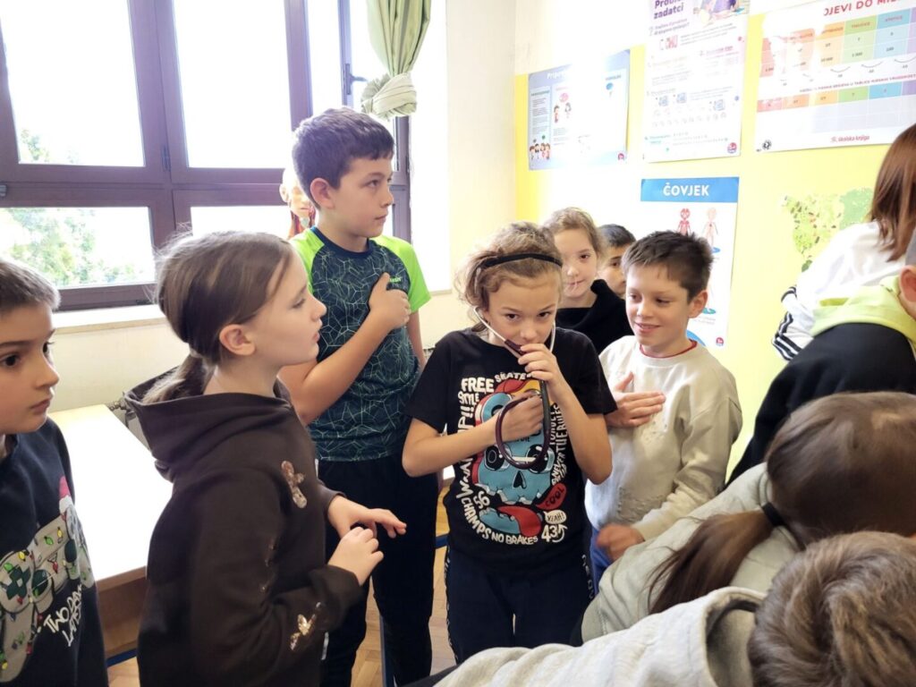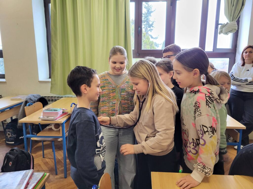 U četvrtak je učenike četvrtog razreda Matične škole posjetila doktorica Anamarija Flego Bojić. Doktorica nas je kroz zanimljivo predavanje upoznala s organima za krvotok kao i njihovom ulogom. Imali smo priliku isprobati pulsni oksimetar te izmjeriti zasićenost kisika u krvi i puls. Nakon toga uspoređivali smo dobivene vrijednosti. Upoznali smo se i sa stetoskopom. Slušali smo zvukove disanja i otkucaja srca. Pričali smo o zaštiti organa za krvotok te kako „ojačati“ srce. Na sva postavljana pitanja smo dobili odgovore te se zahvaljujemo doktorici na susretljivosti i pomoći u učenju. Bilo nam je baš zabavno!