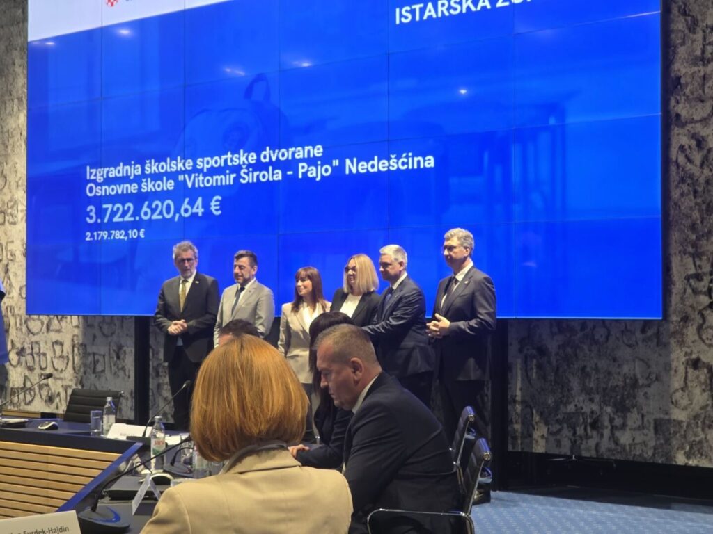 Projekt izgradnje školske sportske dvorane Osnovne škole „Vitomir Širola – Pajo“ u Nedešćini, koji se provodi u partnerstvu s Osnovnom školom i Općinom Sveta Nedelja, ukupno je vrijedan 3.722.620,64 eura. Od toga je 2.179.782,10 eura osigurano iz bespovratnih sredstava Nacionalnog plana oporavka i otpornosti, dok Istarska županija osigurava 1.542.838,54 eura.