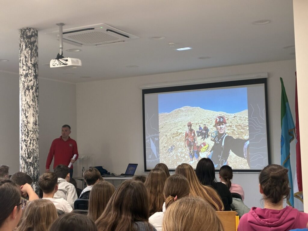 Vrlo zanimljivo i inspirativno predavanja u našoj je školi za sve učenike od 5. do 8. razreda 30. siječnja 2026. održao Sebastijan Labinjan, član HGSS-a, koji je pričao o velikoj međunarodnoj akciji speleospašavanja američkog znanstvenika Marka Dickeya u rujnu 2023. u tuskoj spilji Mordža (Morca).
