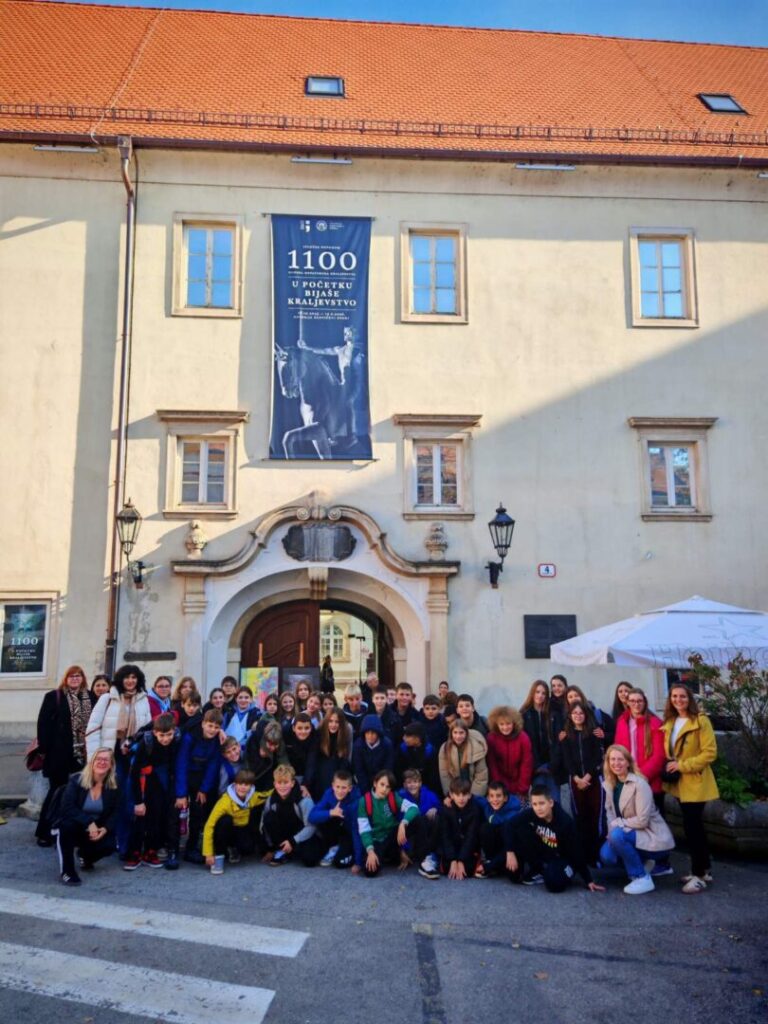 Cilj našeg posjeta Zagrebu bio je posjet izložbi U POČETKU BIJAŠE KRALJEVSTVO – u povodu 1100 godina Hrvatskoga kraljevstva u Galeriji Klovićevi dvori. Prolazeći iz prostorije u prostoriju, uz stručno vodstvo, učenici su se upoznali sa presjekom hrvatske povijesti.