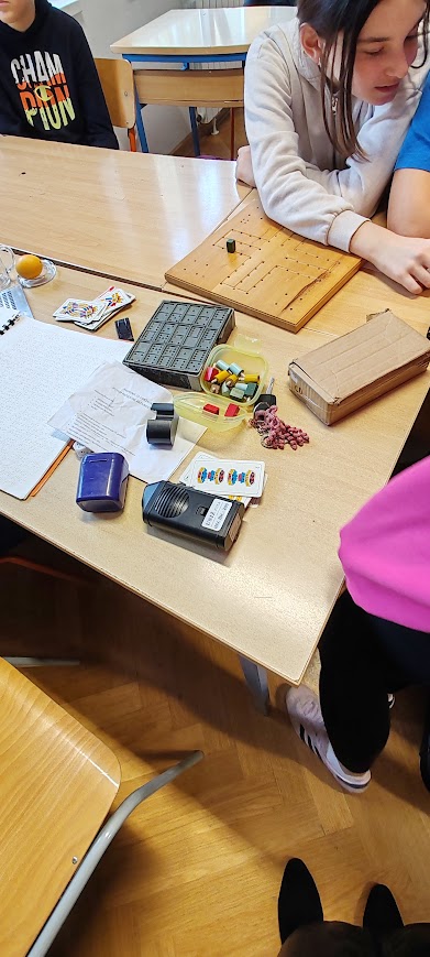 Gosti su predstavili različita pomagala koja koriste u svakodnevnom životu, poput zvučnog tlakomjera, slušnog pokazivača boje, prilagođene igre Čovječe, ne ljuti se te karata namijenjenih slijepim i slabovidnim osobama. Učenici su imali priliku isprobati i kretanje uz pomoć bijeloga štapa, što im je pomoglo da bolje razumiju izazove s kojima se susreću slijepe osobe. Upoznali su se i s hrvatskom brajicom te vidjeli kako se njome piše i čita.