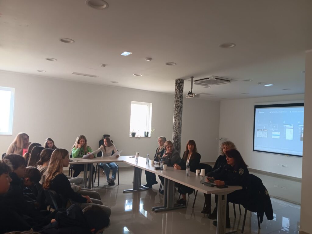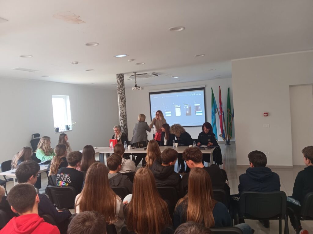 Policijska službenica Radmila Pekas ispričala je učenicima kako je bilo započeti raditi kao jedna od rijetkih žena u policiji početkom devedesetih godina. Govorila je o promjenama koje su se u međuvremenu dogodile, pa danas u policiji više nema tako velikog nesrazmjera između muškaraca i žena. Učenicima je približila i put do tog zanimanja – upis u Policijsku akademiju – te podijelila iskustva iz svog rada, prisjećajući se najtežih, ali i najljepših trenutaka u službi.