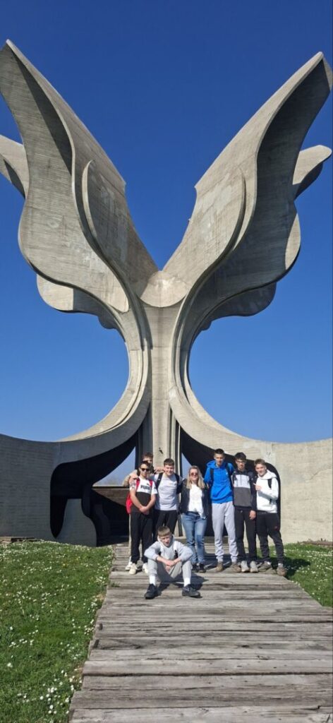 Učenici osmih razreda naše škole sudjelovali su 5. ožujka 2026. godine u terenskoj nastavi iz Povijesti te tom prilikom posjetili Spomen-područje Jasenovac, jedno od najznačajnijih mjesta sjećanja na žrtve stradale tijekom Drugoga svjetskog rata.